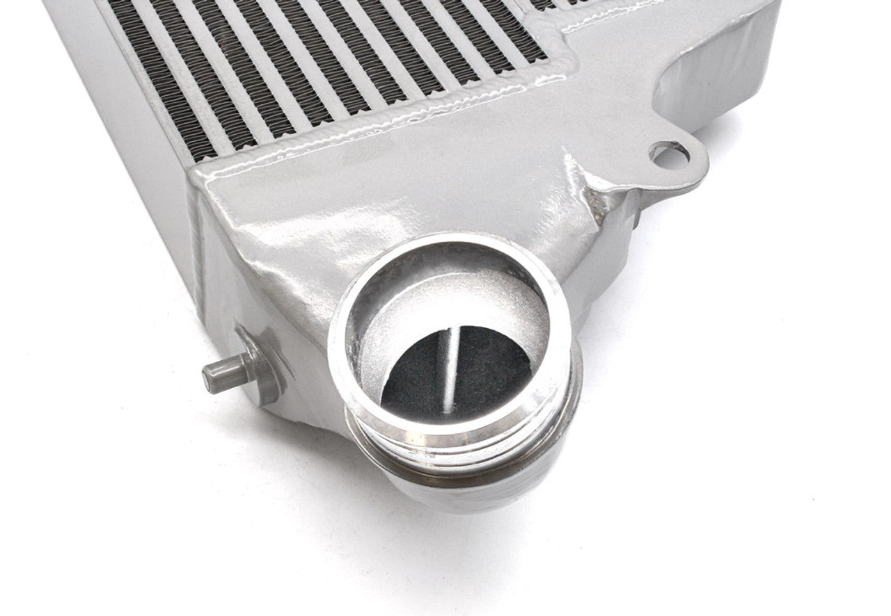 RacingLine’s massive 'Plate & Bar' Intercooler System is one of the best performing intercooler upgrade on offer for these cars. Its massive stepped core gives a mighty 77% increase in frontal area over stock, and uses careful optimised internal flow guides to efficiently divert flow into both the upper and lower sections of the cooler. The internal fin design features a high-speed core using extra tall internal tubes for maximum boost flow.